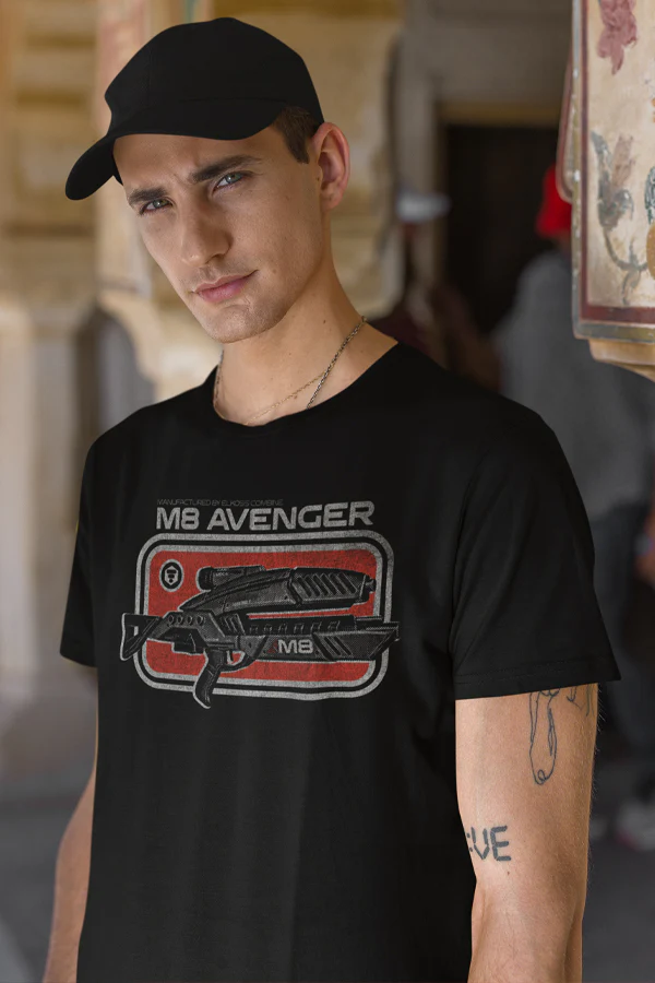 Equip yourself with legendary allure through ourĀ Mass Effect M8 Avenger Tee. This outfit is a tribute to the iconic M8 Avenger assault rifle from Mass Effect. Channel the essence of galactic warfare with the retro-dotted print, a touch of vintage blended with futuristic might.