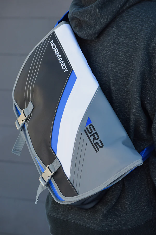 The Mass Effect SR2 Alliance Messenger Bag, like the spaceship it is based on, prides itself in its design and functionality. Right away, you’d notice that it evokes the look of the Normandy SR-2’s exterior. Inside, you’d see that the similarities run deeper: